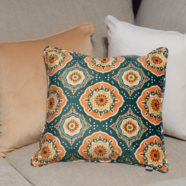 Bring this cushion into your reading nook or sunroom, where its bold pattern and rich color palette can pair beautifully with natural light, cozy throw blankets, and comfortable seating. It will add a burst of warmth and personality, making the space feel welcoming and relaxed.